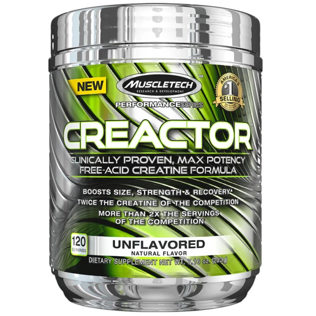 Креатин гідрохлорид від американського виробника спортивного харчування MuscleTech, якого назвали Creactor. На відміну від моногідрату креатину - гідрохлорид розчиняється у воді, у результаті засвоюється і починає працювати швидше та трохи ефективніше. Не затримує велику кількість води у м'язах (на відміну, знову ж таки, від моногідрату). В цілому служить для збільшення витривалості, силових показників, набору м'язової маси, і наділяє памп-ефектом, як і моногідрат, але робить це швидше і діє ефективніше. Доступний у фасуванні 120 порцій (250-270 г залежно від смаку).