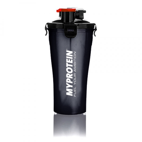Шейкер разделённый на 2 секции, с двумя горлышка Hydra Cup от британского бренда спортивного питания MyProtein. Вместительность бутылки 828 мл, в которую можно сразу налить 2 абсолютно разных напитка.