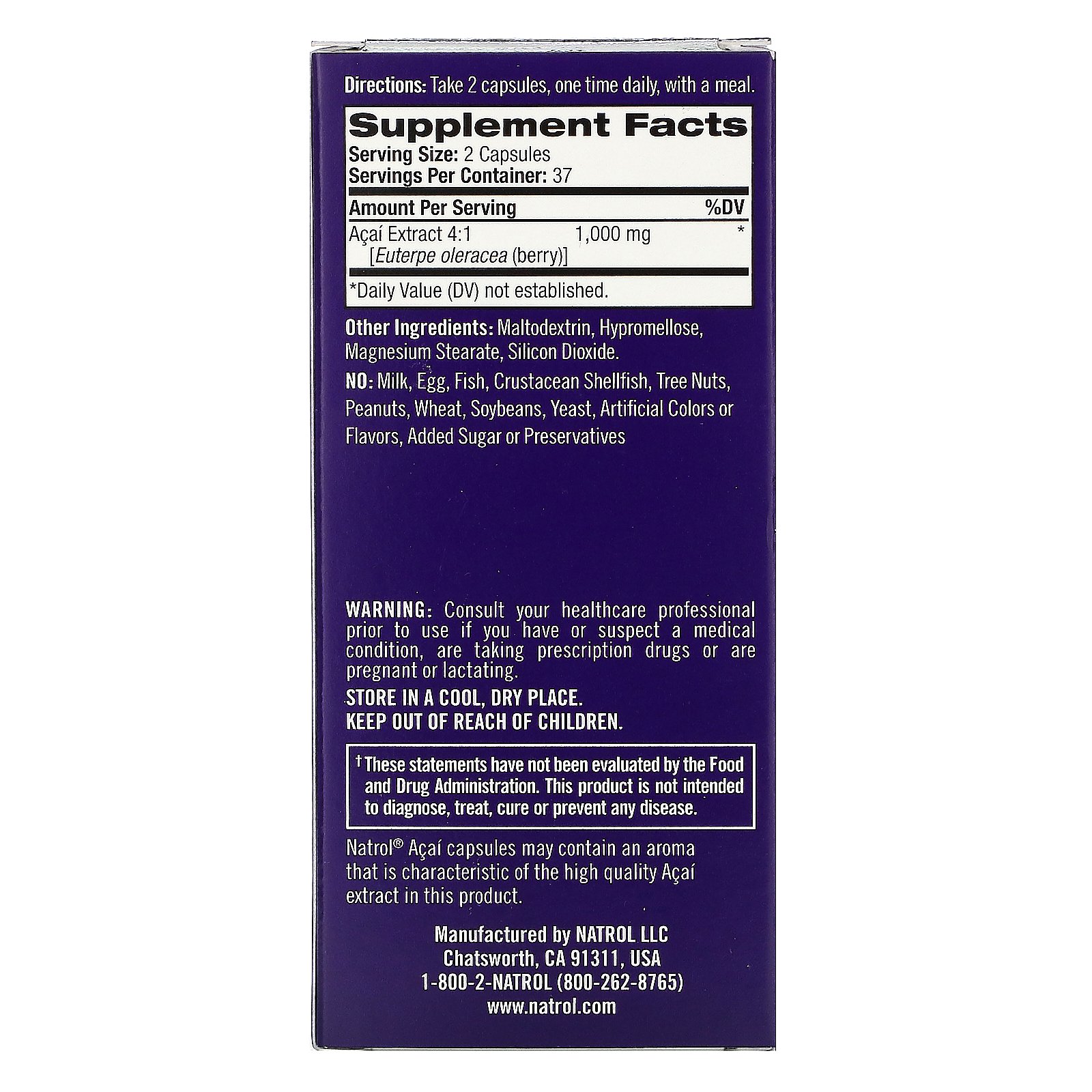 Ягоди асаї корисніші в рази чорничні ягоди, і вважаються одним із найкращих антиоксидантів - борець із раковими клітинами. Також Natrol Acai Berry 1,000 mg використовують для схуднення, адже має жироспалюючий ефект. Враховуючи той факт, що ягоди корисні для волосся, нігтів і здоров'я, то й зовсім асаї найкраща жіноча ягода.