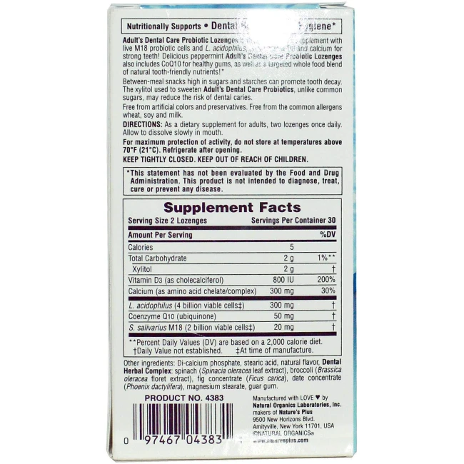 Natures Plus Adult Dental Care Probiotic With M18