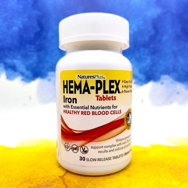 Харчова добавка Hema-Plex Iron розроблена спеціально для підвищення заліза в організмі та покращення самопочуття. Купити Natures Plus Hema-Plex Iron можна за допомогою інтернет - магазину Здоров'як за низькою ціною в інтернет та оригінальної якості.