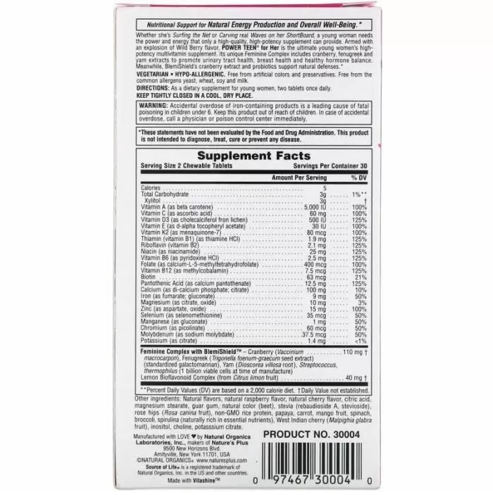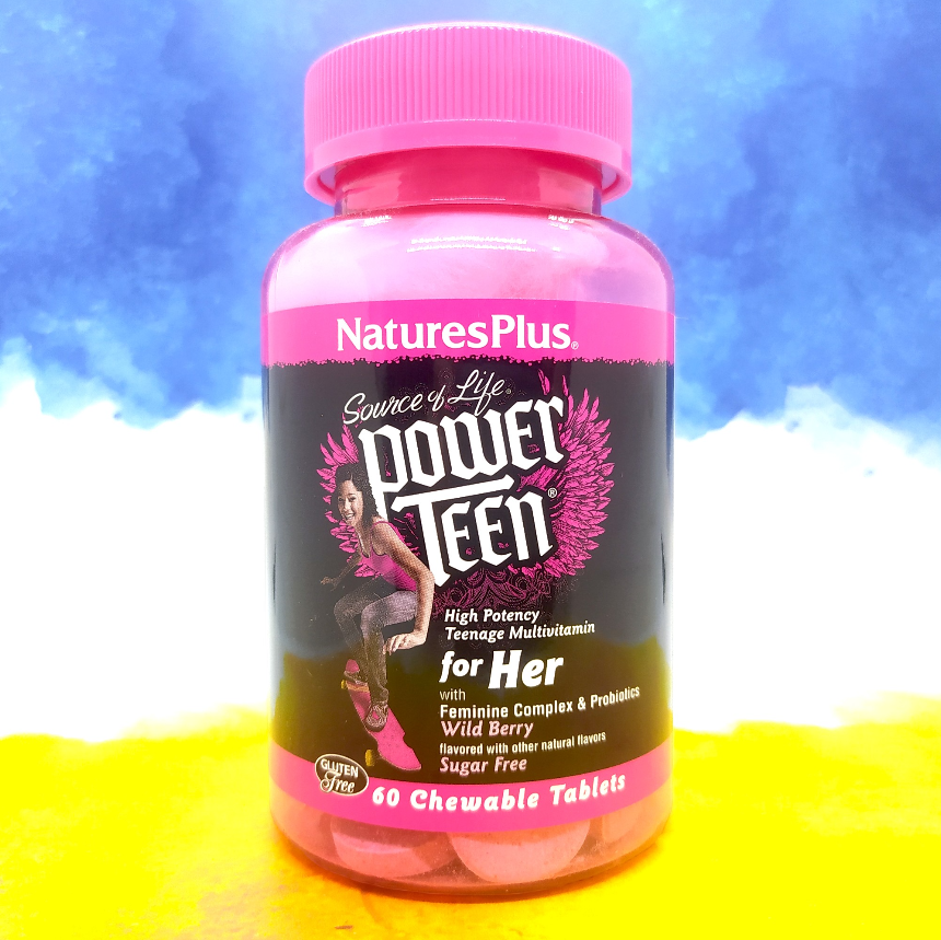 Підліткові вітаміни для дівчаток, враховуючи їх фізіологію та організм, що розвивається. Випускаються Natures Plus Power Teen for Her у вигляді жувальних таблеток у кількості 60 штук.