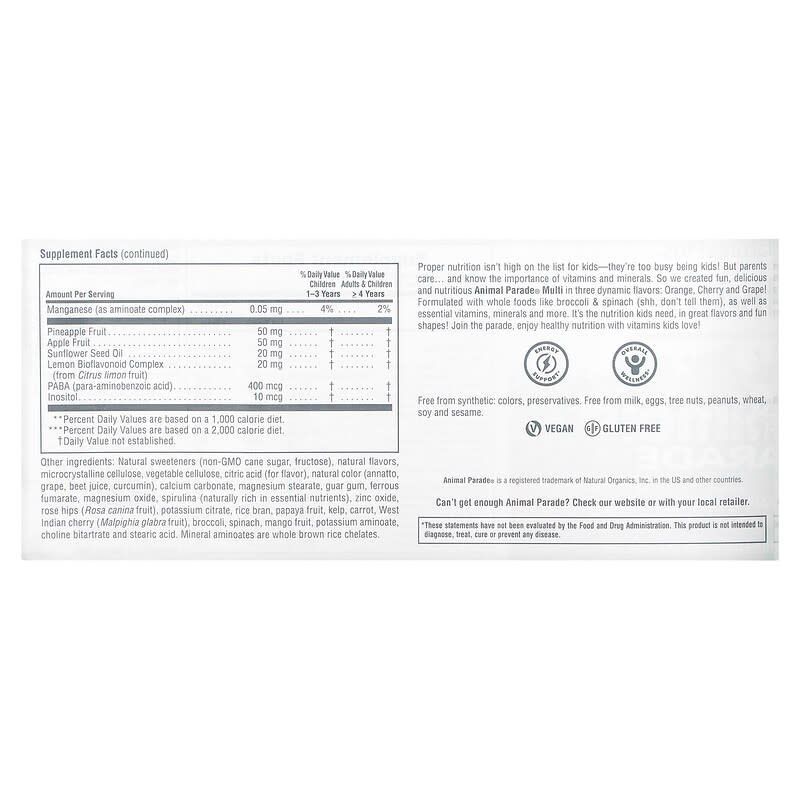 Основні переваги: Children's Multi-Vitamin, Nature's Plus, Animal Parade, 180 жувальних таблеток