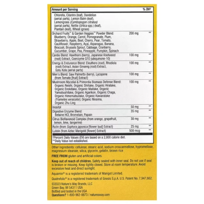 Мультивітаміни для чоловіків Alive !, Max3 Daily, Nature's Way - це преміум формула з включенням до складу сумішей харчових продуктів на основі фруктів, овочів, ензимів, біофлавоноїдів