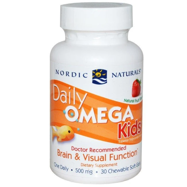 Якісна омега 3, яку виробляють виключно з якісних, глибоко водних сортів риби. Nordic Naturals Daily Omega Kids випускається у фасуванні 30 жувальних, полуничних капсул.
