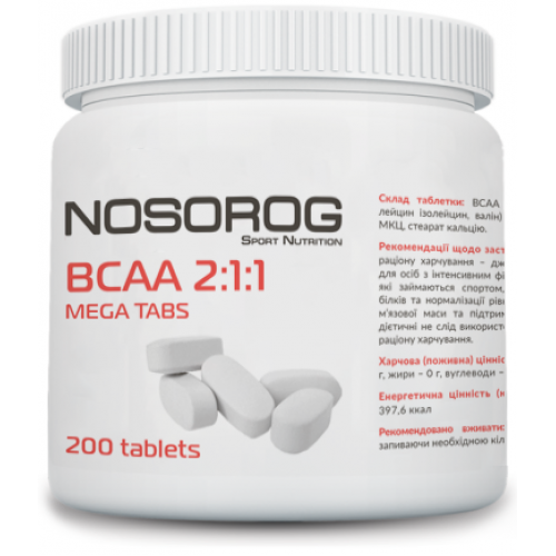 Незамінні амінокислоти BCAA у таблетованій формі від українського виробника спортивного харчування Nosorog. Добавка призначена для прискореного відновлення після тренувань, кращого зростання м'язів, підвищення витривалості та силових показників. Зручна форма дозволить точно розрахувати необхідну порцію амінокислот, щоб не тягти до зали всю банку. Бцаа від Носоріг відрізняються високою якістю і реально працюють. Доступне фасування: 200 таблеток.