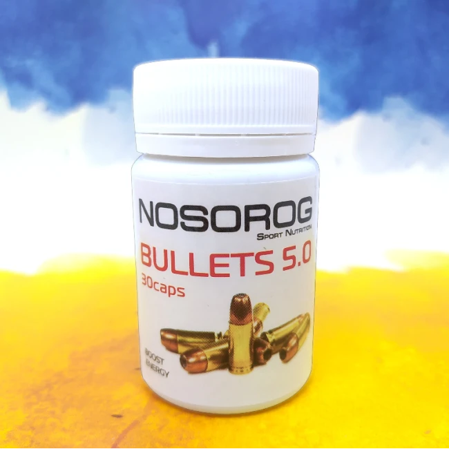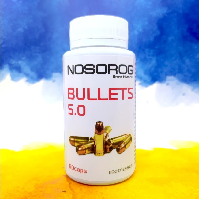 К Вашему вниманию предтренировочный комплекс от украинского бренда спортивного питания Nosorog. Недорогой предтреник Bullets 5.0 содержит в своём составе: dmaa (герань), кофеин, женьшень, экстракт зелёного чая и гуарану. Предназначена добавка для повышения интенсивности тренировок, для увеличения выносливости и сил. Выпускается в фасовках 30 капсул и 60 капсул.