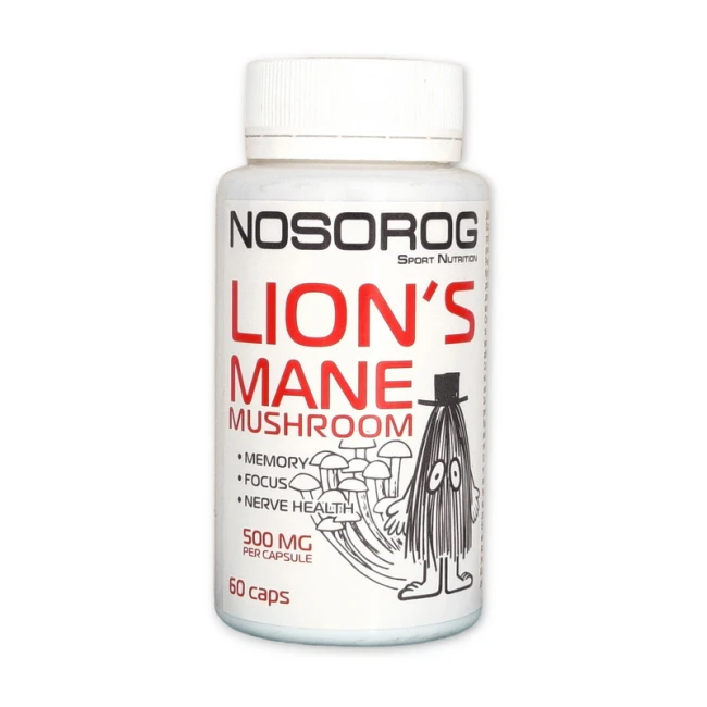 Харчова добавка на основі гриба їжакового для покращення пам'яті та покращення емоційного стану. Добавка Nosorog Lion's Mane Mushroom 500 mg сприяє хорошій роботі нервової системи та мозку. Вона також допомагає під час депресивних станів, діє заспокійливо і надає фізичної енергії.