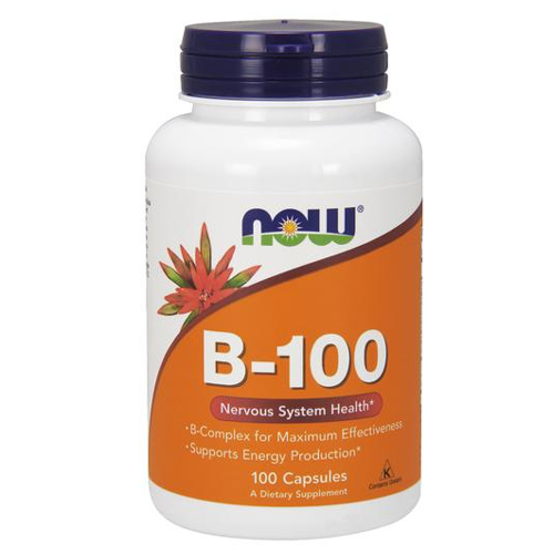 Комплекс вітамінів групи від американського виробника спортивного харчування NOW. Добавка B-100 призначена для нормалізації та підтримки нервової системи, виробництва енергії. Зокрема вітамін В12 приносить значну користь вегетаріанцям. Добавка NOW B-100 включає всі вітаміни групи В, холін і інозитол.