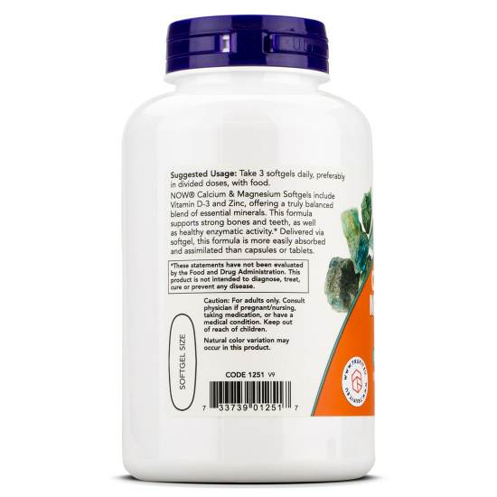 Кальцій з магнієм та додаванням цинку та вітаміну Д3 для здоров'я кісток, а також підвищення імунітету та здоров'я. NOW Calcium & Magnesium with vit. D and Zinc випускається у фасуванні 120 та 240 капсул на американському заводі з виробництва добавок для здоров'я найвищої якості.