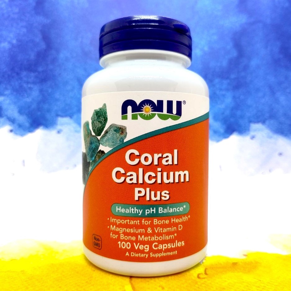Харчова добавка NOW Coral Calcium Plus включає кальцій в лужній формі, магній, вітамін D3 і мікроелементи природного походження.