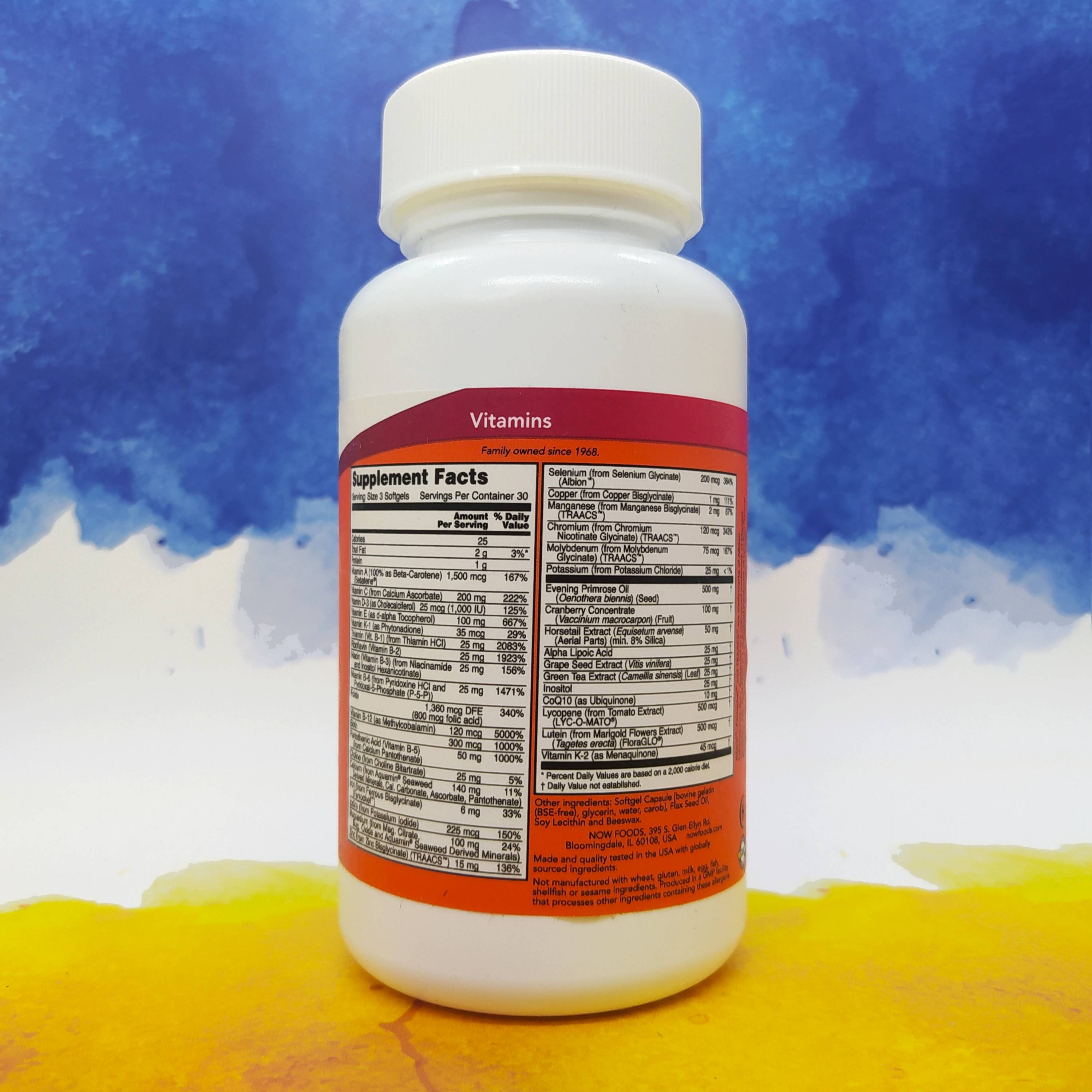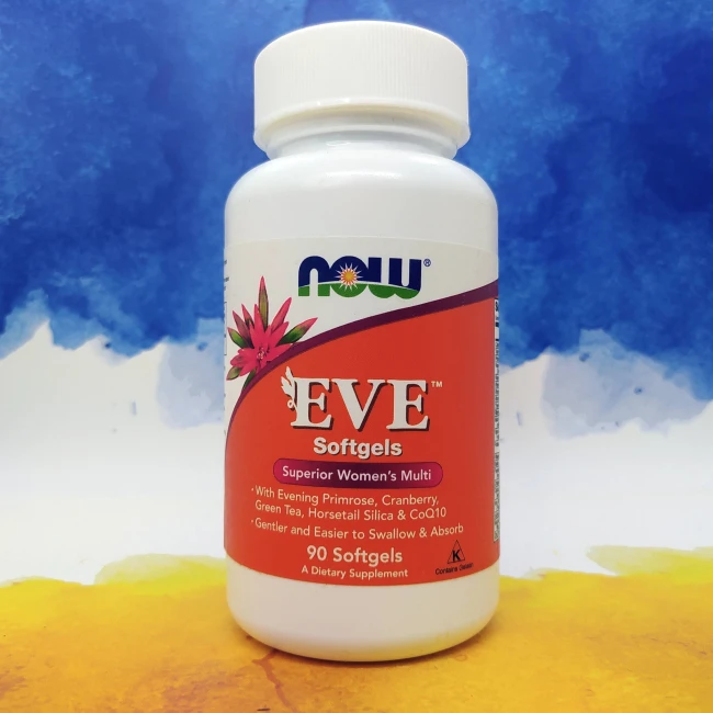 Мультивітамінний комплекс для жінок від американського виробника спортивного харчування компанії NOW. Добавка EVE призначена для здоров'я жіночого організму, та зміцнення імунної системи, підтримує роботу травних органів, та серцево-судинної системи, що позитивно впливає на шкіру. Доступне фасування: 90 капсул.