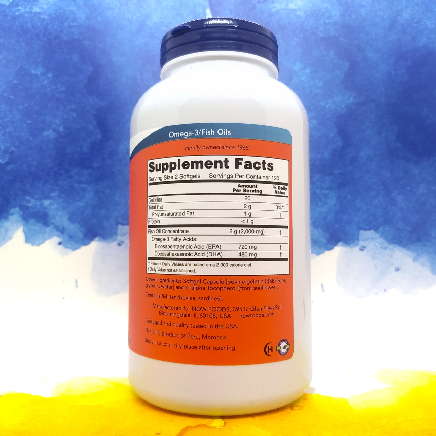Багато хто не знає, але всі корисні властивості для підтримки серцево-судинної системи, для головного мозку, у боротьбі з холестерином тощо впливає не риб'ячий жир, а саме omega 3 жирні кислоти в її складі. Мало того лікувальні властивості починають спрацьовувати саме при прийомі у великій дозі омега 3, тому вибираючи "концентрат" Ви купуєте більш дієвий риб'ячий жир, або ж просто робите комфорт прийому набагато приємніше. 2 капсули NOW Super Omega EPA містять аж 720 мг EPA, і 480 мг DHA - це дві найголовніші кислоти у складі омега-3, адже бувають такі випадки, коли виробники також не вказують їх, або вони дуже низькі.