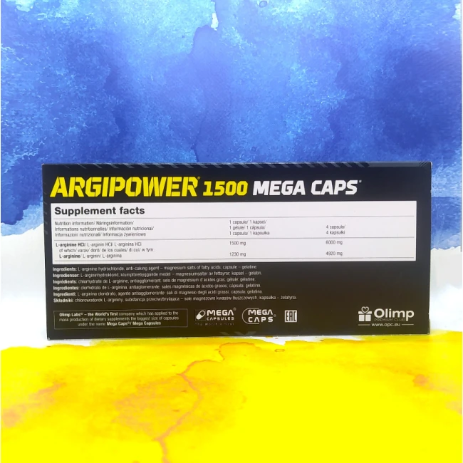 Основне призначення L-аргініну - це стимуляція організму більш інтенсивний тренінг. Аргінін підвищує вироблення гормону росту, надає вашим м'язам гарний памп-ефект. ArgiPower 1500 Mega - це спортивна харчова добавка від польського виробника Olimp, яка містить 1500 мг корисної речовини аргінін хлорид в 1 капсулі, відповідно оптимальне дозування препарату коливається від 2 до 4 капсул, прийнятих за 30-40 хвилин перед тренуванням.