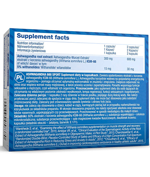 Для боротьби з психічним та фізичним стресом, таким як інтенсивні тренування, підготовка до змагань, строга дієта тощо, пропонується використовувати продукт Gold Ashwagandha 300 від компанії Olimp Nutrition. Він включає екстракт ашваганди, також відомої як індійський женьшень, і призначений для людей, які ведуть активний спосіб життя.