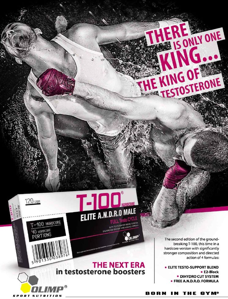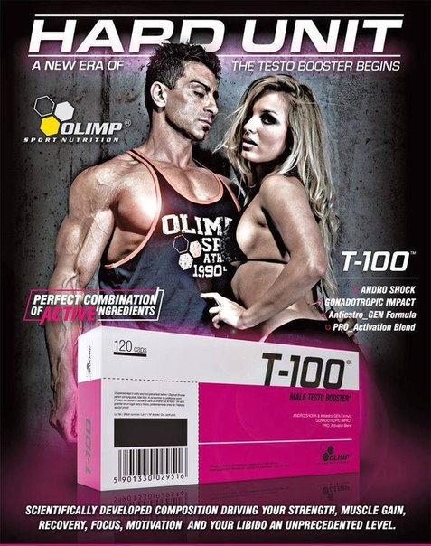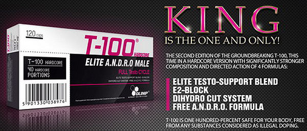 T 100 Hardcore – комплексна добавка для збільшення власного рівня тестостерону. Виготовлена добавка, польським виробником спортивного харчування Olimp Labs, і є новою версією вже знайомого препарату, що добре зарекомендував себе, - "Т-100." Найприємніше в цій добавкі те, що, мабуть, одним з найсильніших комплексів для підняття тестостерону, вона виготовлена з повністю натуральних інгредієнтів (рослинні екстракти, витяжки трав, інше).