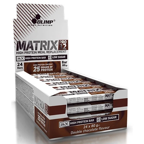 Низьковуглеводний харчовий замінник з 25 г білка в кожному батончику, від польського виробника Olimp. Matrix pro 32 - відмінно підійде як доповнення дієтичного харчування, відмінно тонізує на тривалий період, та й просто замінить їжу, якщо Ви не встигли перекусити. Випускаються протеїнові батончики по 80 грам, і 24 батончики в блоці. Чому назва батонів матрикс 32, тому що на 100 г продукту 32 г білка, а матрикс тому що містить кілька типів білка - молочний протеїн, соєвий і пшеничний гідролізат.