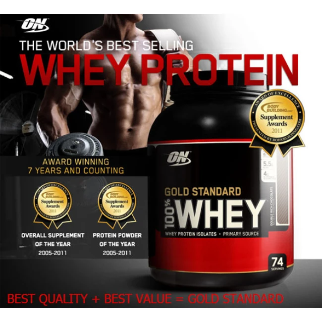 Самий відомий в Україні протеїн від американського виробника Optimum Nutrition, заслужив він свою славу більше рекламою ніж якістю, як багато хто думає. Насправді так, 100% Whey Gold Standard, непоганий але є повно інших виробників такої ж чи навіть кращої якості за нижчою ціною. Якщо коротко, Голд Стандарт - це протеїн основа якого входить сироватковий ізолят, і концентрат. Протеїн не містить лактози та відмінно підходить для набору сухої м'язової маси або схуднення.