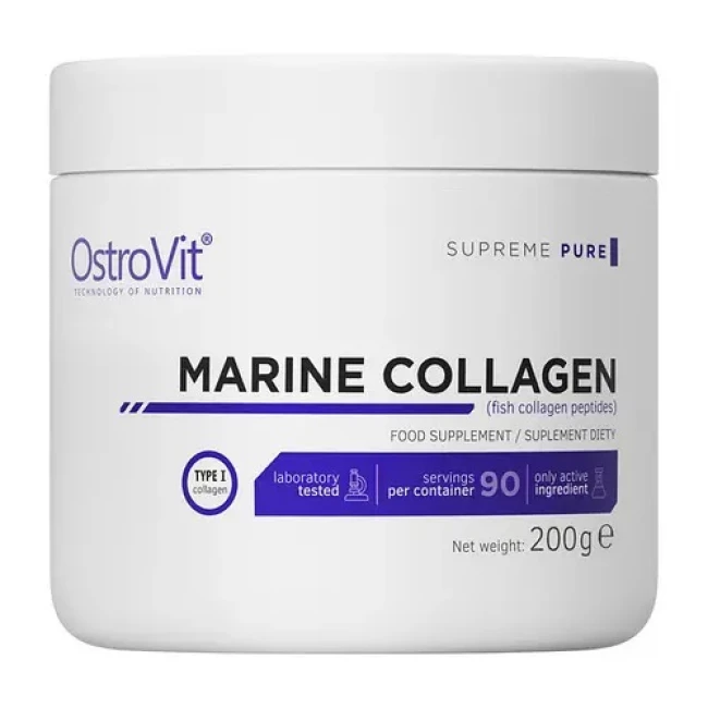Колаген відповідає за гнучкість та пружність тканин, що дає змогу мати здорову шкіру, блискучі волосся, а також міцні суглоби та кістки. OstroVit Collagen Marine містить пептиди морського колагену, структура яких дуже схожа на людський колаген, завдяки чому продукт добре засвоюється. Харчова добавка морського колагену дуже легко розчиняється у воді або соку.