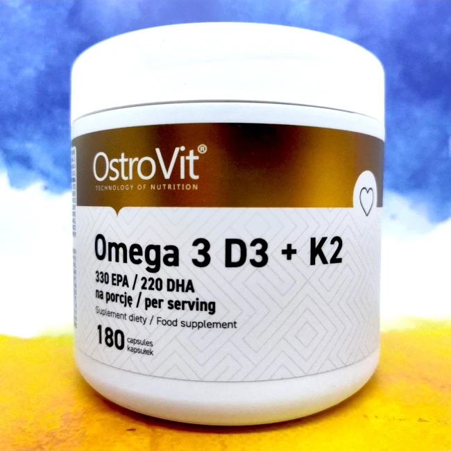 Хоча омега 3 повинна потрапляти до організму разом із їжею, її дефіцит зустрічається практично в усіх. Харчова добавка OstroVit Omega 3 D3+K2 перекриває дефіцит. А додаткові вітаміни у добавці посилюють ефективність омеги.