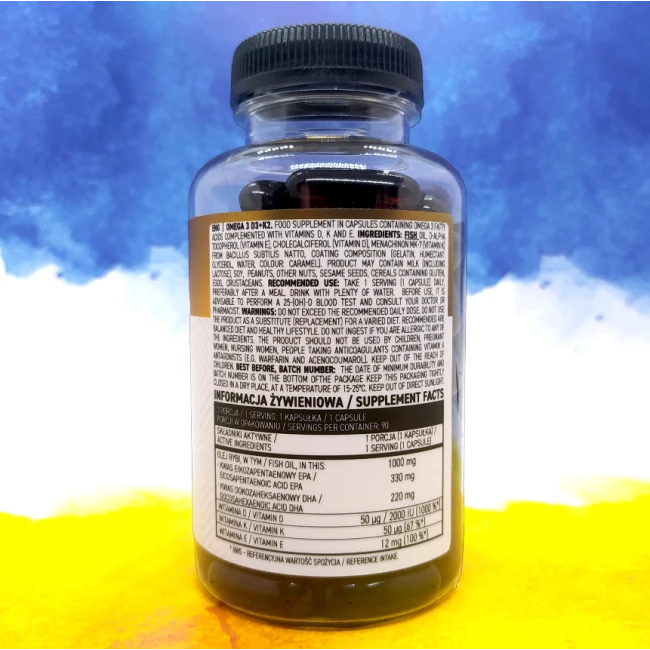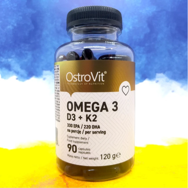 Прекрасна новинка від польського бренду спортивного харчування для підтримки серцево-судинної системи, імунітету та Ваших кісток. OstroVit Omega 3 D3 + K2 випускається у фасуванні 90 капсул, містить омега жирні кислоти, а також вітаміни Д3 і К2.