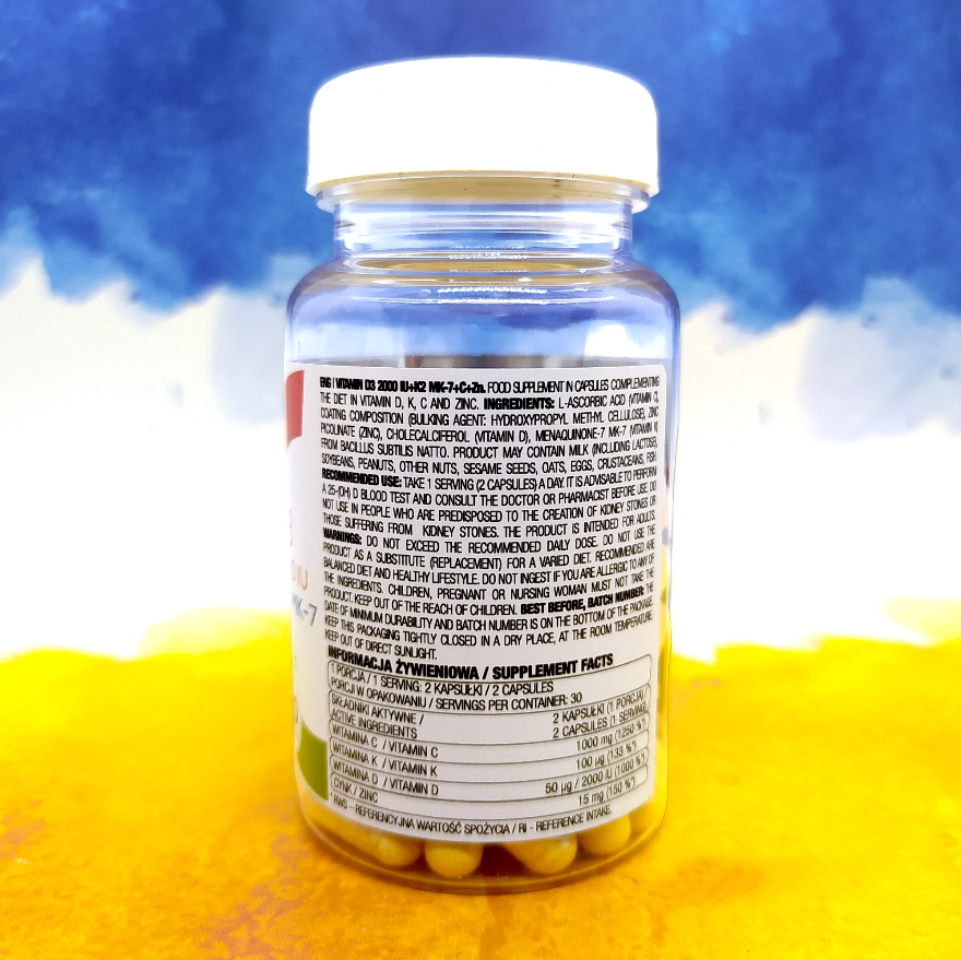 Вітамін К2 відмінне доповнення до Д3 для імунної системи та їх часто рекомендують приймати разом. К2 допомагає кальцію засвоїтись у кісткових тканинах, не даючи кальцію відкладатися в органах. Він відповідає за еластичність судин та регуляцію густоти крові.