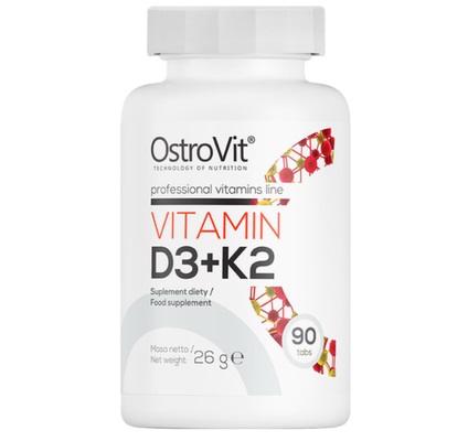 Комплекс вітамінів OstroVit Vitamin D3+K2 підтримує імунну систему, зміцнює кістки та зуби, а також сприяє збереженню м'язових тканин.