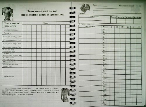 Все досить просто. За допомогою звичайного кранівського сантиметра, робите виміри всіх груп м'язів (у щоденнику вказано в якому стані правильно їх здійснювати) у певні часові проміжки, а також відзначаєте результати всіх видів вправ після кожного тренування, і порівнюєте результати з попередніми. Така нехитра практика допоможе вам з легкістю відстежувати прогрес, або регрес у вправах, а так само, результати зростання всіх груп м'язів, що в свою чергу дасть зрозуміти, але що конкретно потрібно зробити наголос, і де інтенсивність потрібно зменшити. Як приємне доповнення, в щоденнику присутні кілька мотиваційних виразів, від відомих на весь світ культуристів, щоб ви ніколи не втрачали орієнтирів, і не опускали рук у досягненні намічених результатів.