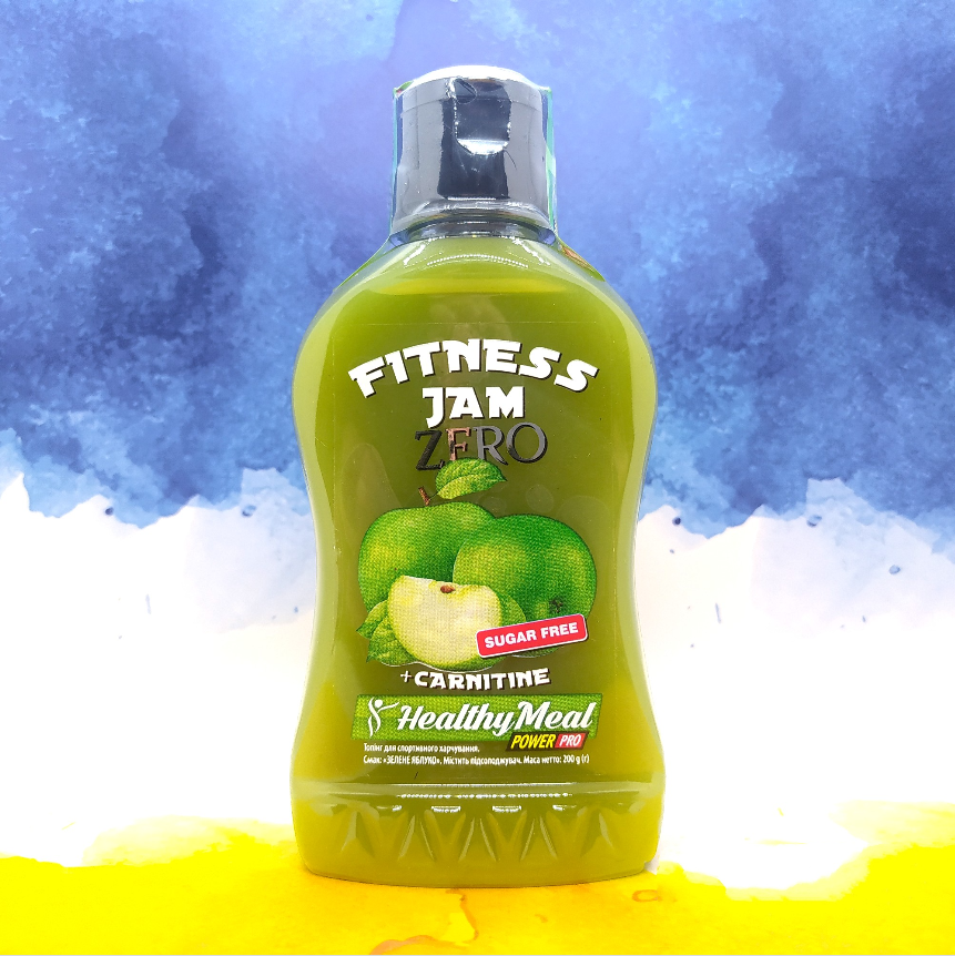 Фітнес джем для любителів солодкого, містить всього 17 калорій на 100 г продукту (пів пляшки), не містить цукру і має карнітин у складі. Фітнес джем Power Pro має велику кількість різноманітних смаків (апельсин, персик, зелене яблуко, полуниця) і зробить Вашу дієту радістю, а не мукою.