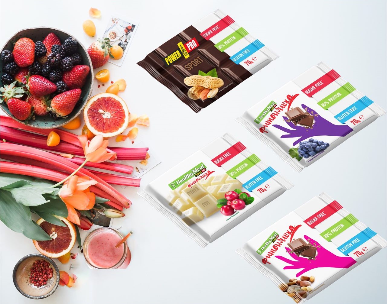 Нові протеїнові батончики без цукру та глютена, з 30% вмістом протеїну. Дані батончики відмінно підходять як корисний перекус, білковий перекус, який вгамує почуття голоду, і допомагатиме тримати Вашу фігуру у формі (звичайно ж якщо їх не переїдати, адже вони дійсно дуже смачні). Випускається в упаковці по 10 штук, кожен батончик вагою по 70 грам, у смаках білий шоколад з журавлиною, молочний із родзинками, молочний з фундуком та чорний шоколад з арахісом.