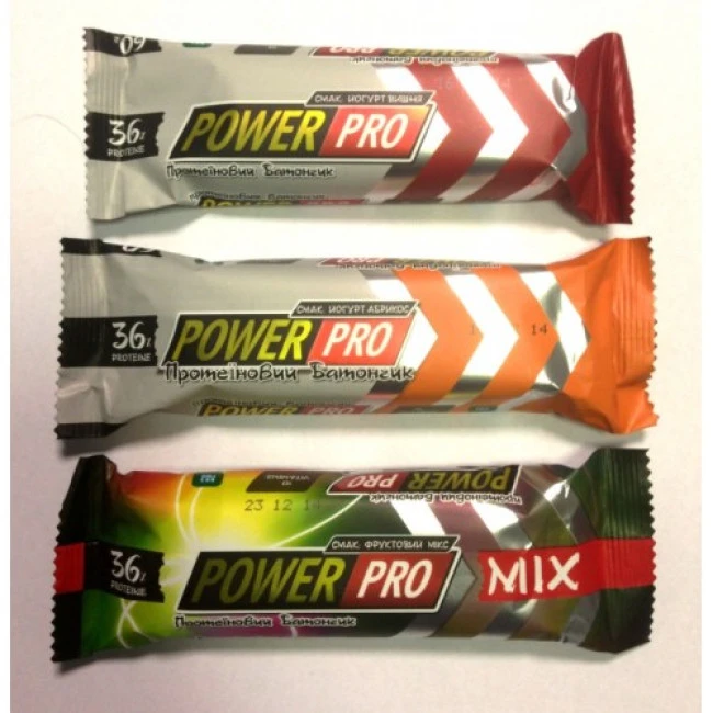 Протеїнові батончики Power Pro з фруктовими наповнювачами: йогурт абрикос, йогурт вишня, вишня в шоколаді та фруктовий мікс із 36% вмістом білка. У блоці 20 батончиків, вагою по 60 грамів кожен, відмінно підходять як альтернатива шкідливим снекам і солодощам. Також хочемо звернути увагу, що Ви можете купити протеїнові батончики з таким же складом, але з іншими смаками. Трохи дешевше батончики ваніль, мокачино, брют, лісова ягода, звичайний горіх на сторінці Power Pro Bar Classic. А також дорожчі: фісташка, лісовий горіх, горіх йогурт та чорнослив з волоським горіхом на сторінці батончиков power pro nutella.