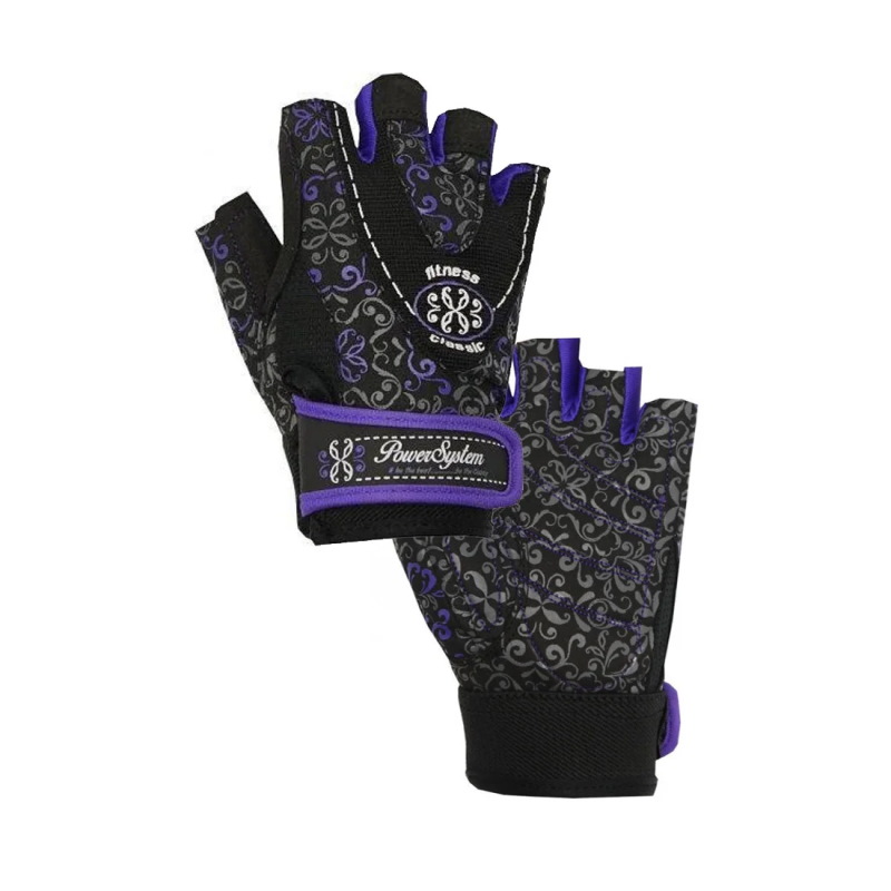 Женские перчатки для фитнеса в розовом, фиолетовом и желтых цветах. Power System PS-2910 имеют узоры в виде цветочков, и уплотнённой ладошкой для комфортного занятия со штангой или гантелями.