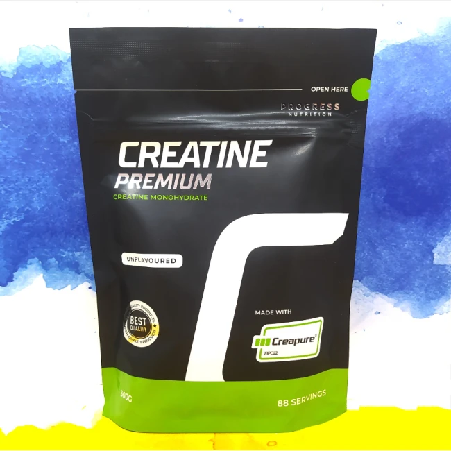 Progress Premium Creatine Creapure цінується серед спортсменів за його дієвість фізично. Креатин креапур чудово допомагає в наборі м'язової маси, відновлює після важких навантажень, запобігає травмам і навіть, за результатами досліджень, захищає від струсу мозку. Хоча останнє звучить сумнівно, перевіряти не собі не рекомендуємо)