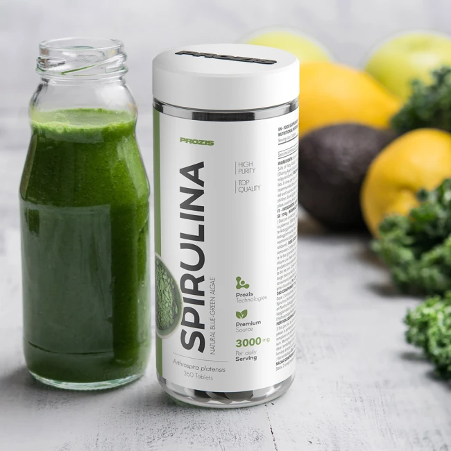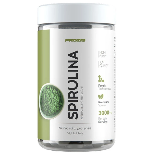 Натуральні водорості для підвищення рівня здоров'я та імунітету натурального походження від португальського бренду спортивного харчування. Prozis Spirulina випускається у фасуванні 90 таблеток і містить дуже велику кількість білка, відповідно і амінокислот, як замінних, так і незамінних. Спіруліна зміцнює імунну систему, підвищує гемоглобін, є чудовим антиоксидантом, що позитивно впливає на вік життя, адже добре уповільнює процеси старіння. Корисних властивостей дуже багато у цих водоростей, але всі вони ще не доведені до кінця, але позитивних відгуків, що приймають цю добавку, порівняно з плацебо набагато більше.