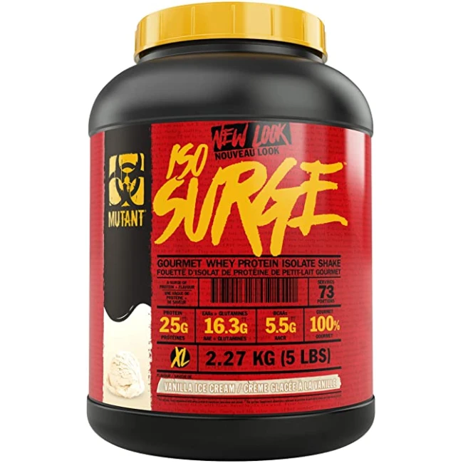 Ізолять сироваткового білка від американського виробника спортивного харчування PVL. Mutant Iso Surge містить лише 3% вуглеводів (приблизно 1,5% цукру) та 80% білка. Продукт призначений для зміцнення та зростання сухої маси, допомагає швидше відновитися після тренувань та підтримки низьковуглеводної дієти.