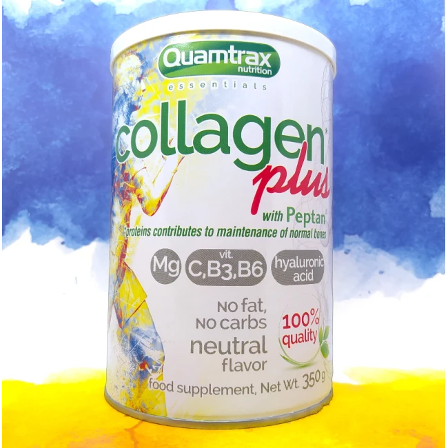 Добавка для шкіри, волосся, нігтів, суглобів, зв'язок та хрящів на основі гідролізованого колагену з магнієм та гіалоурановою кислотою. Quamtrax Collagen Plus бере сировину на заводі Peptan, який є найкращим у світі з виробництва колагенів. Виробляти цей колаген на заводах у Франції та Бразилії, запатентована формула колагену Peptan® - це унікальний біологічно активний колаген, з максимальною біодоступністю.