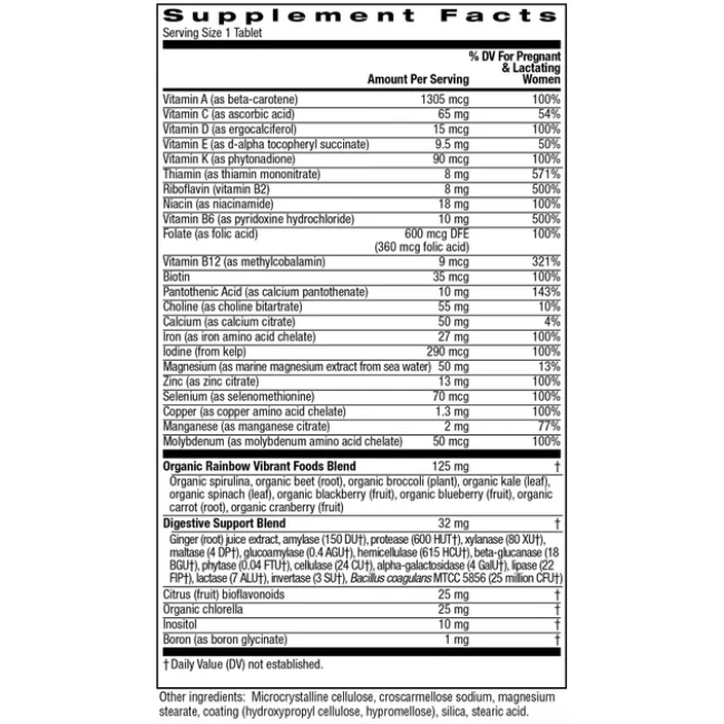 У період вагітності жіночий організм вимагає особливий пріоритет на мультивітаміни. Комплекс Rainbow Light Prenatal One розроблено з метою підтримати організм усіма необхідними компонентами під час вагітності. Мультивітаміни Prenatal One ідеально підходять вагітним, жінкам що годують грудьми, і тим, хто планує стати мамою в майбутньому.