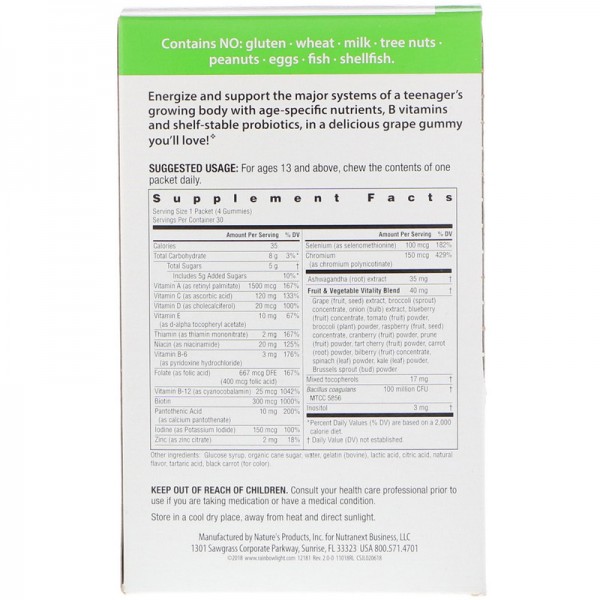 Витамины для подростков премиального качества, производства США в жевательной форме. Rainbow Light Teen Multivitamin Gummies выпускается в фасовке 100 и 120 жевательных мармеладок. Хотим отметить что продукт не содержит: глютена, пшеницы, сои, молока, рыбы и других аллергенов.