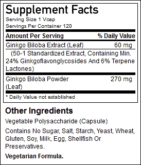 Гинкго билоба для мозговой активности и улучшения кровообращения в дозировке 60 мг