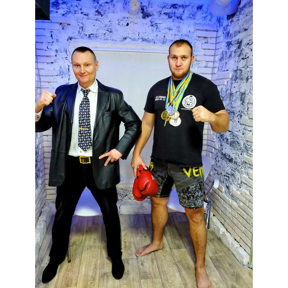 Слева #Alfamanevo-тренер по ударной технике СК Булава городе Энергодар, 25 лет в спорте, тренирует группы детей и взрослых. Специалист в области питания, омоложения и ЭНЕРГИИ. Справа Викинг - действующий профессиональный боец MMA, воспитанник клуба "Булава" в Энергодаре. Чемпион всеукраинского турнира по Кик боксингу К-1. Участник и призёр международных турниров по ММА. Победитель чемпионатов Украины и чемпион области по рукопашному бою, среди военно-служащих. КМС по боксу. Победитель областных турниров по боксу.