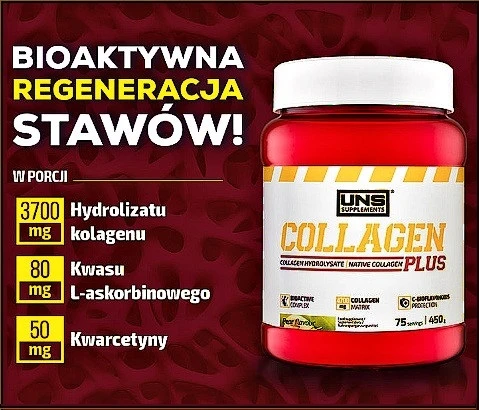 Так же, для здоровья суставов и связок очень часто используется коллаген. Однако в силу того, что помимо улучшения состояния соединительной ткани этот белок еще прекрасно оздоравливает кожу, укрепляет ногти, и улучшает здоровье и внешний вид волос, он пользуется большей популярностью среди женской половины населения. Добавка Collagen Plus от польского производителя UNS лишь единожды появившись на рынке товаров для здоровья, тут же затмила собой практически все аналоги, став непререкаемым бестселлером среди порошковых коллагенов. В первую очередь такой ажиотаж объясняется конечно же высоким качеством добавки. Покупая Collagen Plus вы приобретаете высококлассный гидролизованный коллаген, плюс в состав добавки сразу входит витамин С, что в разы повышает его усвояемость по сравнению с аналогами. Самым приятным в этом продукте, учитывая все выше перечисленное является конечно же его стоимость. Пожалуй при таком составе, и качестве товара эта цена даже несколько занижена производителем, и если это хитрый маркетинговый ход UNS, целью которого является, "подсадить" на свой коллаген людей, то он явно удался.