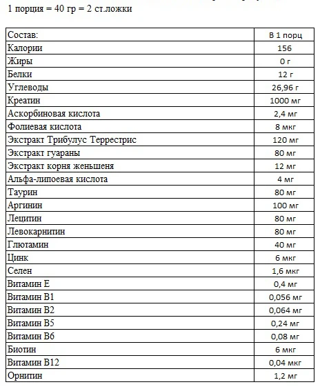 Рекомендуем принимать в зависимости от потребности в калориях. При наборе массы - это более 3000 ккал, и при больших физических нагрузках - на 15% нужно потреблять больше калорий чем тратится за день. Хотим обратить Ваше внимание, что в данном гейнере на 100 грамм продукта почти 400 калорий. Данная цифра является, плюс-минус, стандартной у всех гейнеров. К примеру сириус масс имеет 1250 ккал, но это указано не на 100 грамм продукта, а гораздо больше.