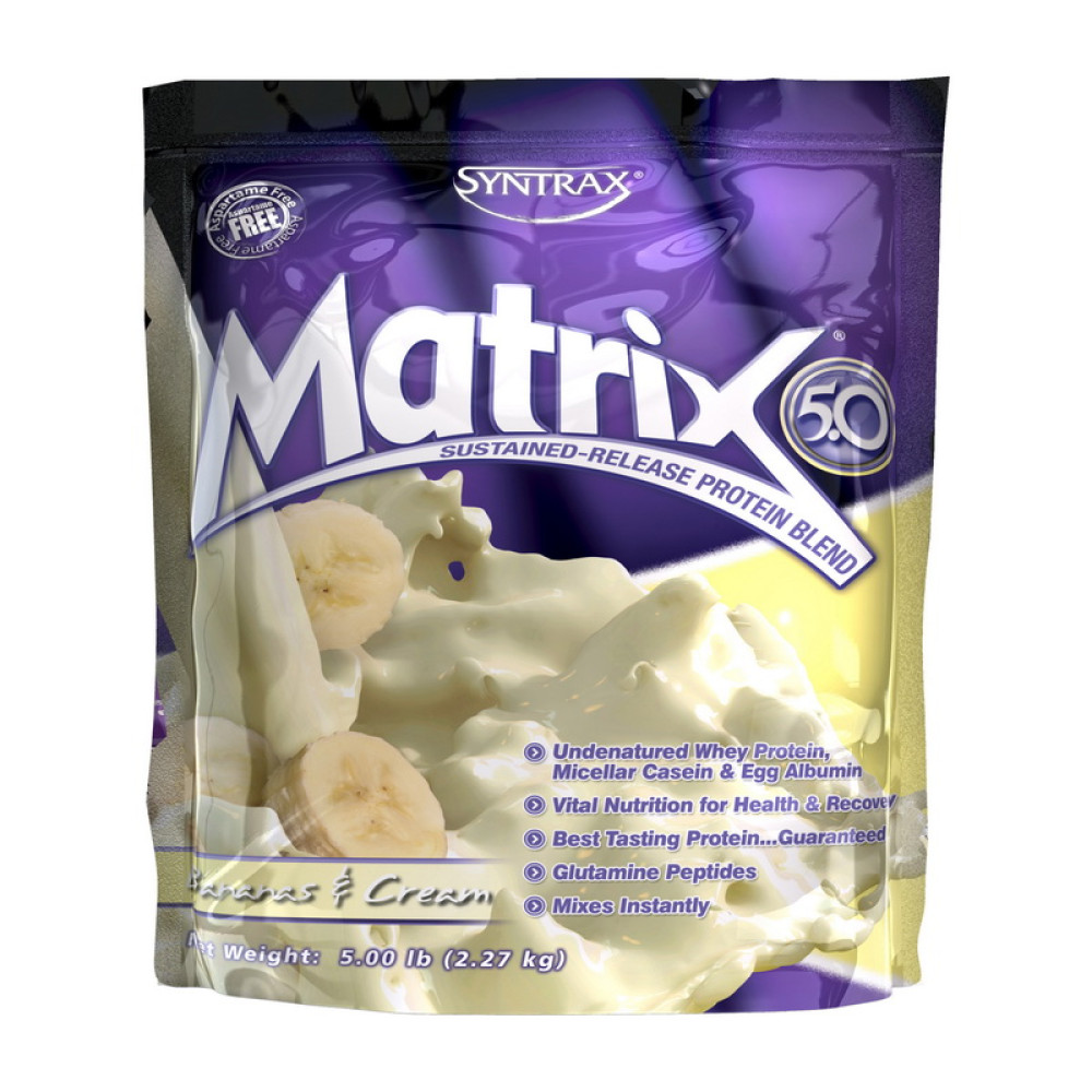 В составе 2270 грамм Matrix 5.0  содержатся аж 5 видов белка (концентрат сывороточного, концентрат молочного, казеиновый, яичный, гидролизованная пшеница). Предназначен протеин для удобного и вкусного дополнения белком основного рациона питания. Его можно использовать в качестве диетического перекуса, и набора мышечной массы.
