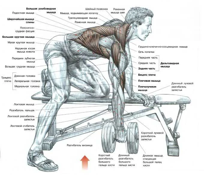 - Тяга гантелей в наклоне - 18 х 4