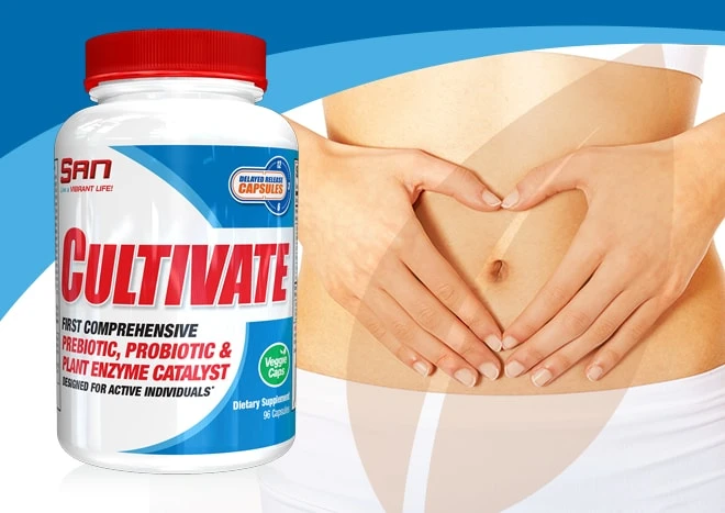 Інноваційна розробка у вигляді комплексу для покращення травлення під назвою CultiVate була представлена фахівцями популярного американського виробника спортивного харчування компанії SAN. Добавка, в основі якої міститься цілий комплекс пробіотиків, пребіотиків, а так само ферментів рослинного походження покликаний швидко впорядкувати всю систему травлення, позбавити здуття живота, дискомфорту в ШКТ, і різних проблем. пов'язаний із засвоєнням та переробкою їжі організмом. Доступне фасування: 96 капсул