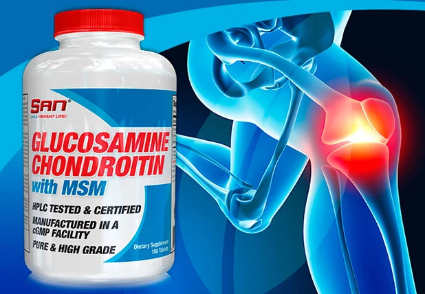 Дійсно робоча спортивна, харчова добавка на основі багаторазово перевірених, базових компонентів природного походження, була представлена фахівцями популярного американського виробника висококласного спортивного харчування та вітамінних добавок для підтримки здоров'я, компанією SAN Nutrition. Препарат під назвою SAN Glucosamine Chondroitin with MSM є розробкою заснованої на багаторічному досвіді з урахуванням передових технологій та останніх наукових досліджень у галузі здоров'я суглобів. Серед позитивних ефектів, що імовірно виникають при вживанні препарату, можна особливо відзначити:
