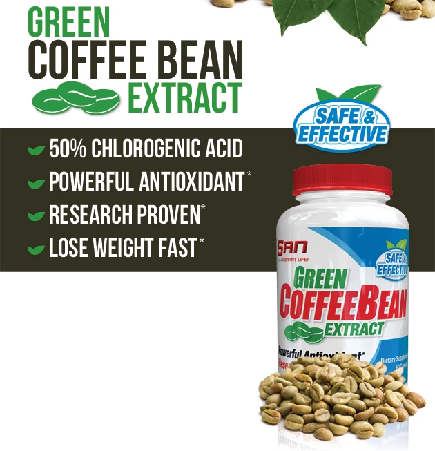 Інноваційна харчова розробка фахівців популярного американського виробника спортивного харчування, компанії SAN під назвою SAN Green Coffee Bean, є високоякісною спортивною добавкою на основі чистого екстракту зерен зеленої кави, що бореться з жировими відкладеннями, що накопичилися в тілі, і будучи потужним антиоксидантом, перешкоджаючи згубному впливу на організм вільних радикалів.