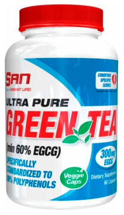 Препарат SAN Green Tea є новою жироспалювальною розробкою від фахівців популярного американського виробника спортивного харчування, компанії SAN Nutrition. Копмлекс San ultra pure green tea містить 500 мг чистого екстракту зеленого чаю в кожній капсулі, містить кофеїн, катехіни та флавоноїди, які покликані підвищити рівень ментальної концентрації, забезпечити потужний антиоксидантний захист, та покращити процес жироспалювання. Доступне фасування: 60 капсул