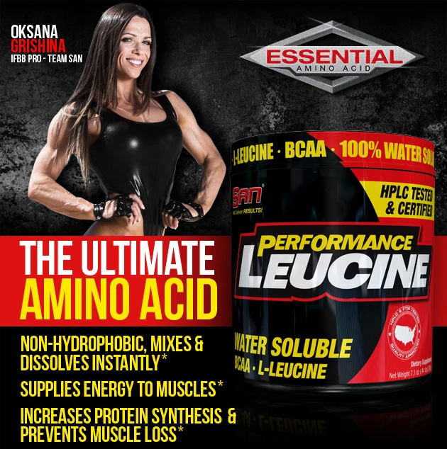 Амінокислотна харчова добавка на основі високоякісної незамінної амінокислоти лейцин була представлена популярним американським виробником висококласного спортивного харчування, компанією SAN Nutrition. Комплекс під назвою SAN Performance Leucine містить аж 5000 мг лейцину в кожній порції, попереджає катаболізм, стимулює ріст сухої м'язової маси та помітно прискорює процеси відновлення організму. Доступне фасування: 200 грам