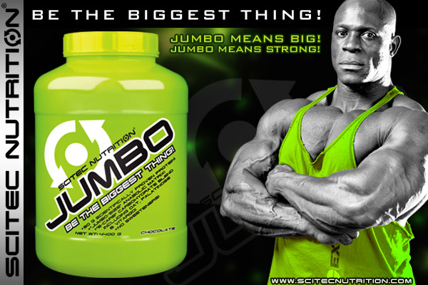 Високо вуглеводна спортивна добавка для швидкого набору ваги під назвою Jumbo - це відмінний гейнер від відомого угорського виробника спортивного харчування компанії Scitec Nutrition. Кожна порція гейнера Джамбо містить 50 грам білка і шести компонентний вуглеводний комплекс, що складається як зі швидких так і з повільних вуглеводів, для рівномірного та тривалого забезпечення вас необхідною енергією. Добавка створена з метою насичення організму цінними речовинами, які найчастіше не повною мірою присутні у повсякденному раціоні. Scitec jumbo сприяє набору м'язової маси і підходить для спортсменів з будь-яким типом статури.